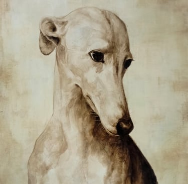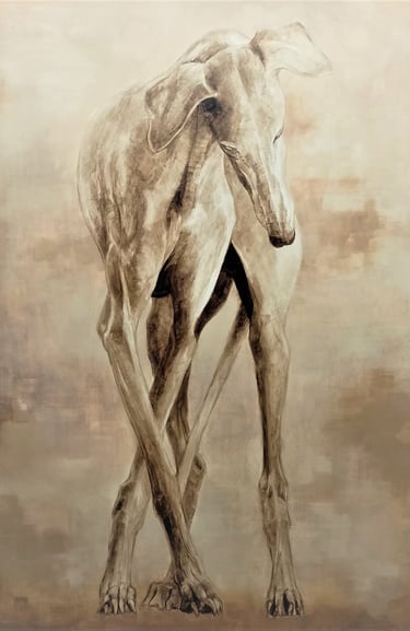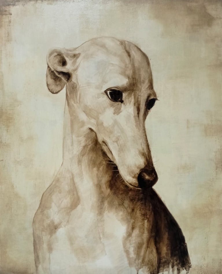 "Il Levriero" bitume su tela 70 x 100, opera unica prezzo 3600 Euro