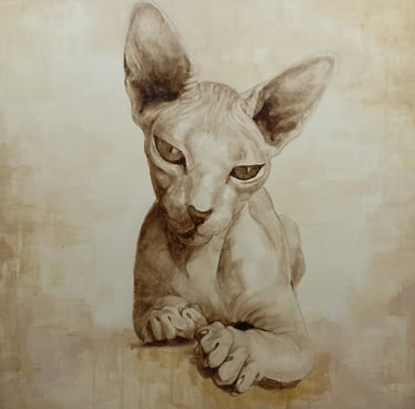 "Ritratto di Sphinx" bitume su tela, opera unica, prezzo 1300 euro
