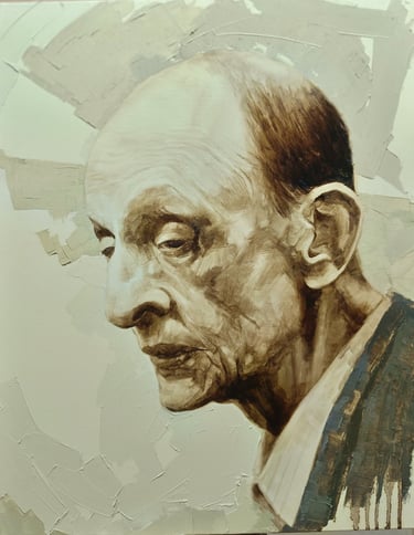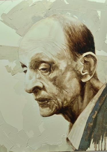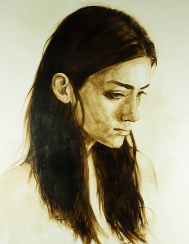 Le velature di bitume stratificate creano profondità abissali, mentre i contrasti luminosi strappano i soggetti dall'oscurità conferendogli presenza e dignità. È in questo dialogo tra luce e tenebra che i ritratti di Ross acquistano la loro forza espressiva: gli occhi brillano di vita propria, i muscoli sembrano tendersi sotto la pelle, le espressioni catturano attimi di verità emotiva.
