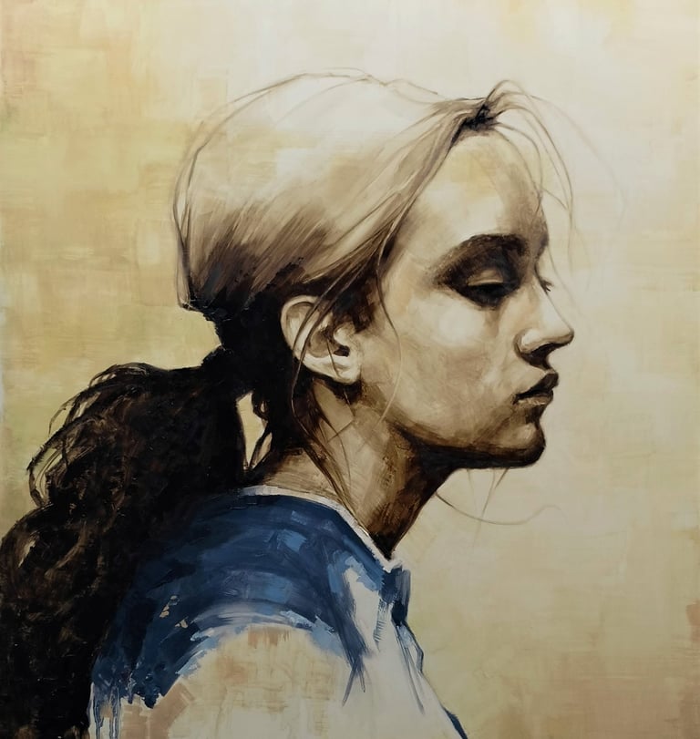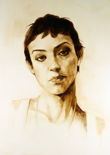 La gestualità della tecnica rivela la mano dell'artista: ogni tratto è un movimento studiato che rispetta e celebra la fisionomia del soggetto
