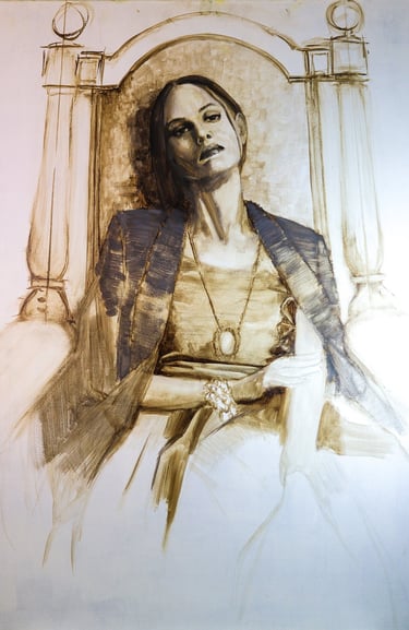 "La Regina" Bitume ed olio su tela cm 100 x 70 cm. prezzo 3600 euro, opera unica